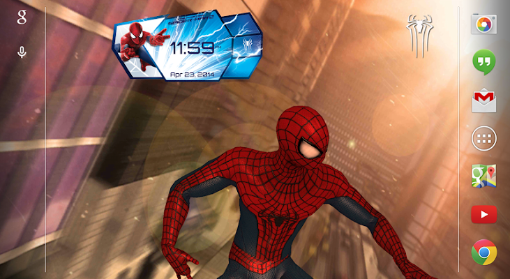 Escucha el héroe en rojo y azul recitar el tiempo para usted, así como pequeñas sorpresas aquí y allá para que usted descubra mientras que el Amazing Spider -Man 2 Clock Widget se ajusta a la pantalla principal .